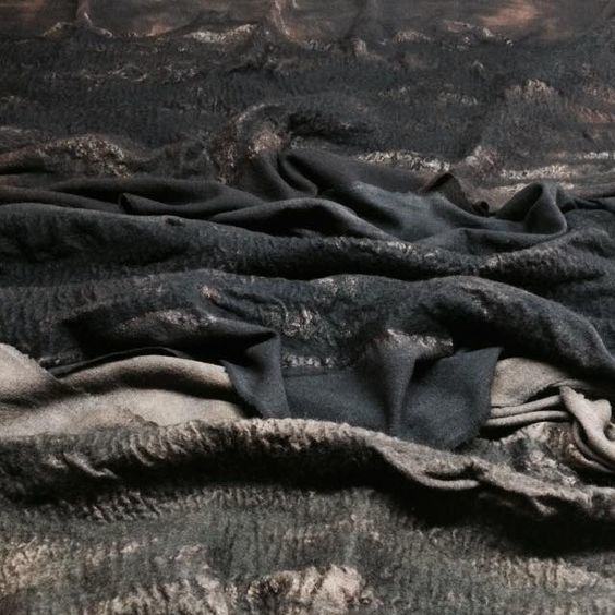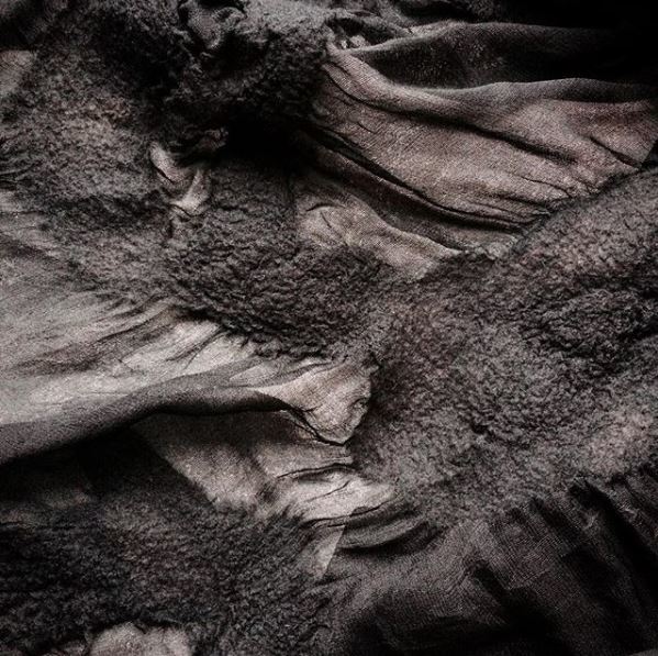 她通过不断的实验,将不同的天然纤维随机组合,放入热锅古法染色,从而去更深入地探讨每种材质的特性。在这个过程中,各类纤维对染料反应的差异性被不同程度地放大,多种原材料通过布局和品种的独特组合,在反复着色后最终形成了极具自然气息的色彩肌理。
