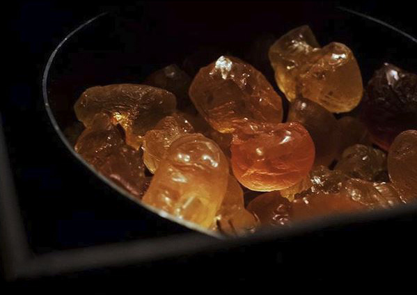萨赫勒地带的琥珀原石、撒哈拉沙漠的火山岩和黑色的橡皮球,因为提前浸泡在未经稀释的精油中,所以这三种介质自带香气,味道醇厚悠远,经久不散。