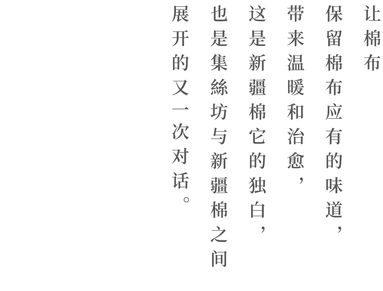作为一家长期研究天然纤维并深知自然力量的生活方式品牌,集絲坊在与这些高品质长绒棉长期打交道的过程中,我们越来越感受到:棉花原本的天然纤维特性应该被好好看见、重新慎重对待。