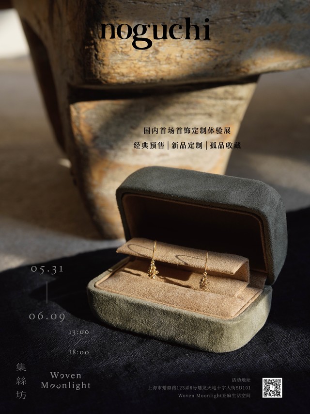 时间:2024年5月31日-6月9日(13:00-18:00) 地点:上海蟠龙天地十字大街SD101 Woven Moonlight 亚麻生活空间 noguchi品牌方在廊日5.31-6.2,13:00-18:00 在廊日三天,品牌方现场提供专属定制建议 现场将会有孤品和定制款首饰进行展示售卖,每一款都是独一无二的 扫描海报二维码在 midi这里进行预约 或直接电话Woven Moonlight店铺进行预约:(021)59881569 展期其他时间,无需预约