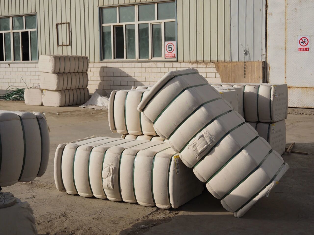 在轧花厂加工打包完成的皮棉包